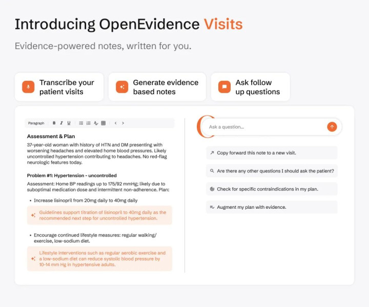 这种模式下,OpenEvidence既是医生的入口,也是学术与产业数据的分发枢纽。